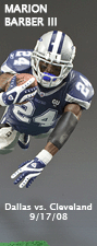 2/12/09- 6" and 12" custom posed versions of University of Florida quarterback TIM TEBOW. 1/25/09 - 6" versions of MARION BARBER III, one of which is from an iconic play during the 9/17/08 game vs Cleveland. Check out the Cowboys page for comparison photos from the actual game.